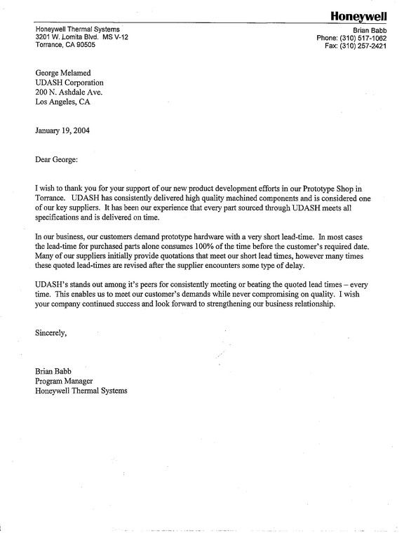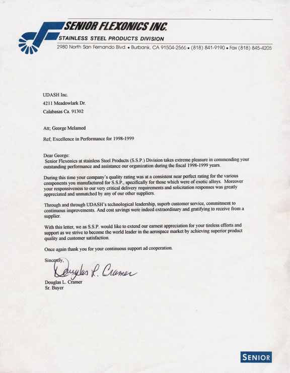 Over the decades UDASH Corporation has received countless accolades, commendation letters and awards for successfully manufacturing custom precision CNC components for our countless satisfied clientele. Major aerospace companies such as Boeing, Lockheed-Martin and Honeywell over the years have praised our superior performance and high-quality components produced